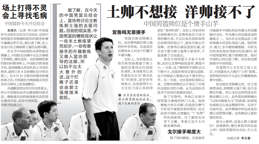 那一年,中国男篮的核心任务是在天津举办的亚锦赛。由于核心姚明因伤缺席,国家队整体实力大打折扣。更尴尬的是,当时队中多位老将都曾与郭士强做过国家队队友,有的资历甚至比他更深。权威尚未完全树立,战术磨合也显仓促,最终中国男篮在决赛中不敌伊朗队痛失冠军,郭士强也在一片质疑声中黯然离任。
